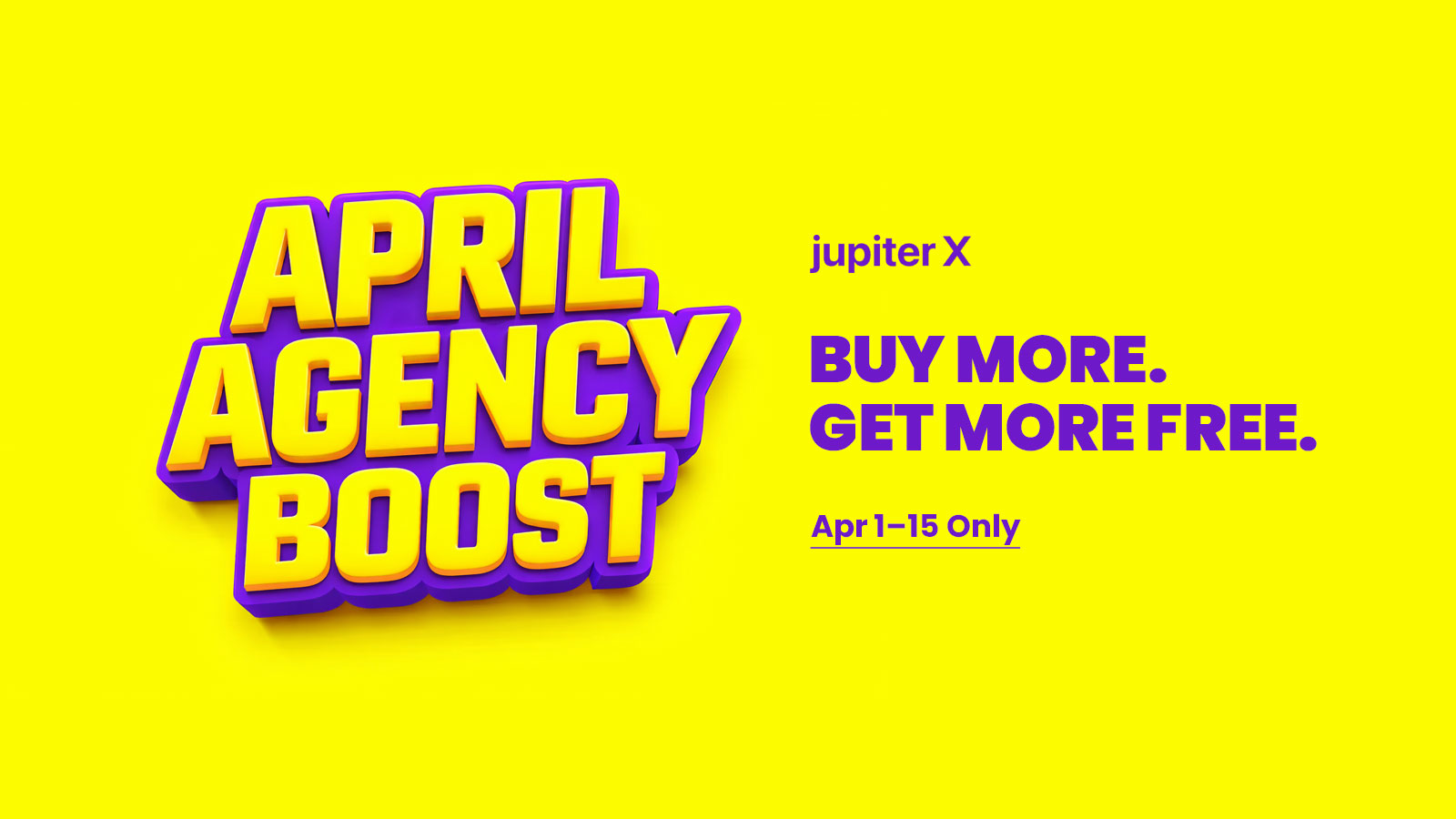 For a limited time from April 1 to 15, get 1 free Jupiter X license for every 10 purchased, or 10 free for every 100. Perfect for agencies and freelancers scaling client projects.