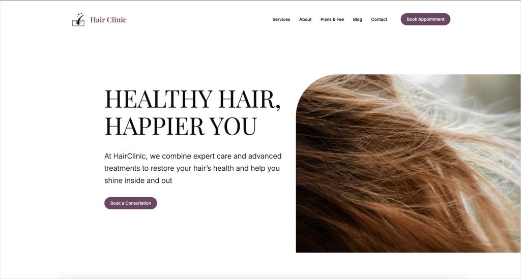 A calm and elegant layout for dermatology clinics, beauty centers, and aesthetic services, focused on trust and appointment bookings.